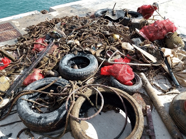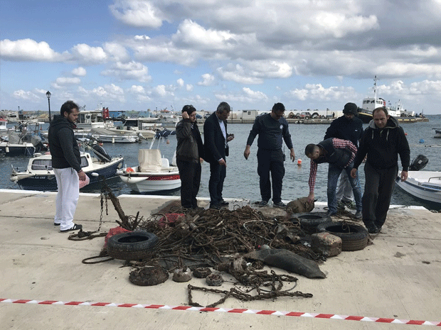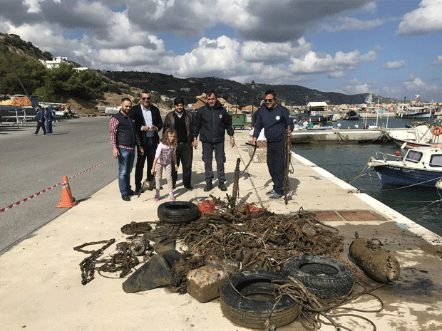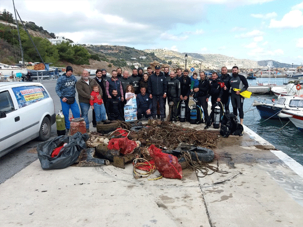 Λάστιχα αυτοκινήτων, χαλιά, σακούλες, μπουκάλια, σιδεριές και... ηλιακό θερμοσίφωνα ανέσυραν την Κυριακή δύτες από τον βυθό του λιμανιού στην Παντάνασσα Ρεθύμνης στην Κρήτη.