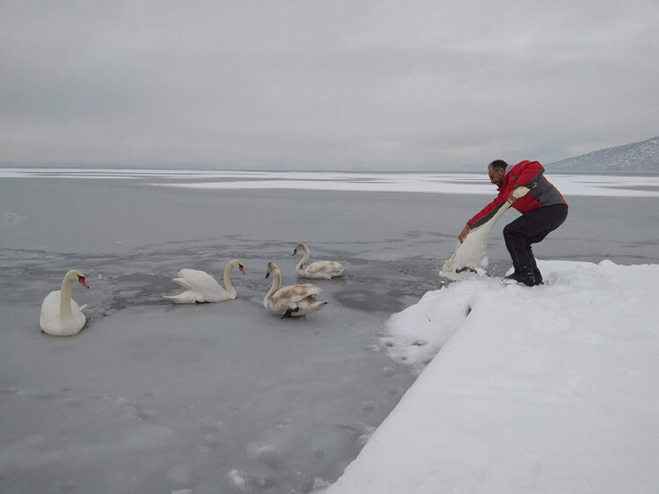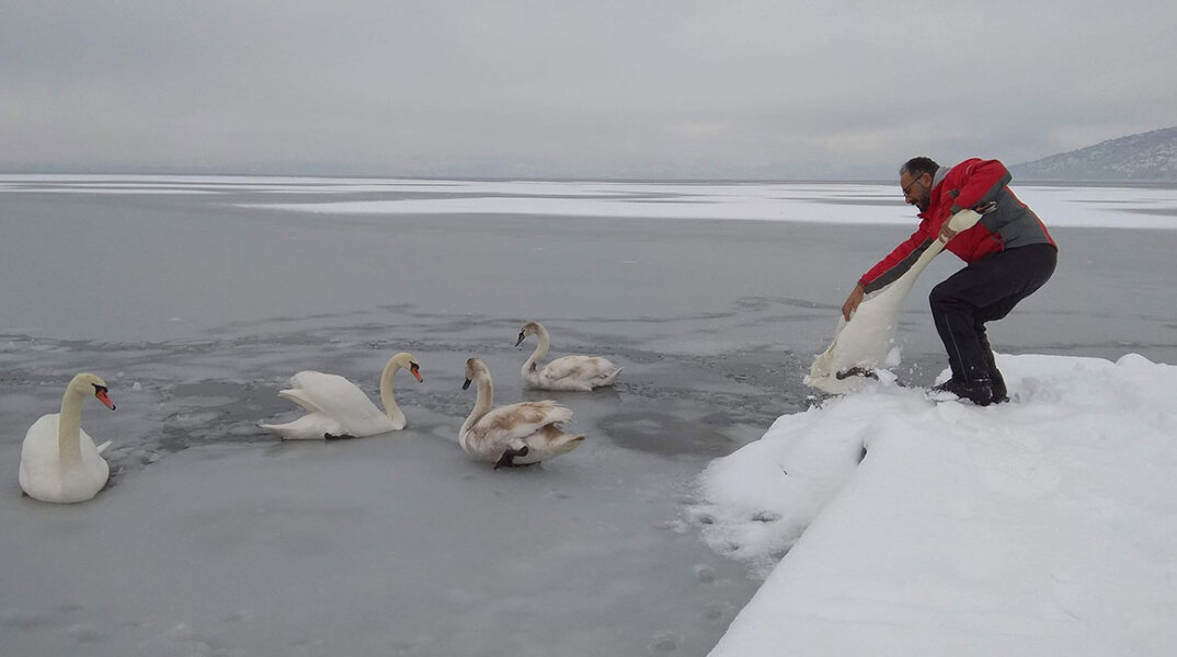 «Ήδη έχουμε σώσει 17 μεγάλα πουλιά, όπως κύκνους, πελεκάνους και ερωδιούς που κάθονται μέσα στο νερό τη νύχτα, αλλά όταν αυτό παγώνει, τα πόδια τους εγκλωβίζονται και δεν μπορούν να κινηθούν» εξηγεί στο ΑΠΕ-ΜΠΕ ο Νίκος Παναγιωτόπουλος από την Εταιρία Προστασίας Περιβάλλοντος. Επίσης, και άλλα υδρόβια πουλιά αντιμετωπίζουν προβλήματα στην λίμνη Καστοριάς όπου ξεχειμωνιάζουν, καθώς τα υγρά τους πόδια, «κολλάνε» πάνω στον πάγο και κινδυνεύουν από ασιτία ή ακόμη και από σαρκοφάγα ζώα που ψάχνουν τροφή, καθώς πρόσφατα εθεάθη να τριγυρνάει πάνω στην λίμνη ένας λύκος.