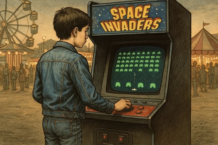 Στο λούνα-παρκ του Ποσειδωνίου πήγα μόνο μία φορά. Ηλεκτρονικά δεν έπαιξα ποτέ πια στη ζωή μου — ούτε σε ουφάδικο, ούτε σε κονσόλα, ούτε σε υπολογιστή, ούτε στο κινητό, ούτε στο Facebook. Ποτέ. Δεν ξέρω γιατί. Πρώτο και τελευταίο μου, ήταν το καλύτερο όλων των εποχών: το Space Invaders, στο λούνα-παρκ της Μπότσαρη. Αν είχα άπειρα δεκάρικα, ακόμα εκεί θα ήμουν.