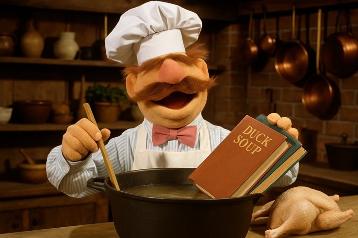 Η αγγλική ιδιωματική έκφραση «duck soup» σημαίνει ότι κάτι είναι εξαιρετικά εύκολο, «παιχνιδάκι» ή, όπως λέμε, «ευκολάκι». Χρησιμοποιείται για να περιγράψει μια εργασία ή μια δραστηριότητα που μπορεί να ολοκληρωθεί χωρίς καμία απολύτως δυσκολία ή προσπάθεια. Η προέλευση της φράσης έχει δύο επίπεδα. Κατά πρώτον, βασίζεται στην ιδέα ότι οι πάπιες θεωρούνται ιστορικά εύκολος στόχος για τους κυνηγούς, ενώ η παρασκευή σούπας είναι επίσης μια σχετικά απλή μαγειρική διαδικασία. Ο συνδυασμός των δύο εννοιών δημιούργησε μια ισχυρή μεταφορά για οτιδήποτε μπορεί να επιτευχθεί αβίαστα. Ωστόσο, η φράση καθιερώθηκε στην αμερικανική αργκό και έγινε ευρέως γνωστή μέσω της ομώνυμης ταινίας των μεγίστων Αδελφών Μαρξ, που κυκλοφόρησε το 1933. Η ταινία, αν και δεν είχε καμία σχέση με πάπιες ή σούπες, μιλά για το πόσο αβίαστα μπορεί να προκύψει (ακόμη και) μία καταστροφή: είναι πάντα ευκολάκι, piece of cake.