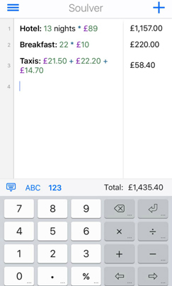 Παρόμοια εφαρμογή είναι και το Soulver. Απλά γράψε τα έξοδά σου και η εφαρμογή θα βγάζει το σύνολο, ώστε να μην αναγκαστείς να τη βγάλεις τις τελευταίες μέρες μόνο με το πρωινό του ξενοδοχείου.