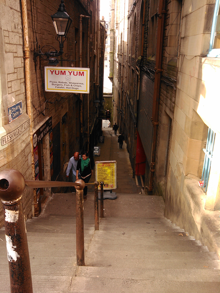 Ο ήχος της γκάιντας από τους πλανόδιους καλλιτέχνες με τα κιλτ επισκιάζει συχνά τον θόρυβο της ζωντανής αυτής περιοχής του Royal Mile, που όπως και ολόκληρη η πόλη του Εδιμβούργου, θυμίζει σκηνικό θεάτρου και ο επισκέπτης γίνεται και θεατής αλλά και ηθοποιός στο... έργο που παίζεται μπροστά του.