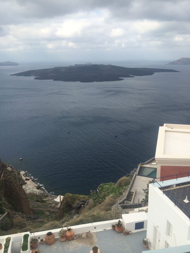 Προσγείωση το πρωί. Τοπίο σκληρό. Ο χειμώνας παραμένει ποιητικός στη Σαντορίνη. Τρυφερή θλίψη, μελαγχολική ομορφιά. Διάσπαρτες νοσταλγίες μία απροσδιόριστη αδημονία