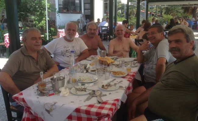 Δεν ήμασταν όμως τόσο ξενέρωτοι δίπλα στη θάλασσα με τα ούζα. Τα μεσημέρια ακουγόταν βροντερή η φωνή του Προέδρου (ένας είναι ο Πρόεδρος στην Ελλάδα) «ρε μαλάκα...». Ο Λευτέρης Παπαδόπουλος στο ουζερί της Σούλας με σταθερό μενού τα ξερά κουκιά και τον παστό κολιό, με το δικό του ιδιαίτερο τρόπο (πάντοτε βρίζοντας) έβαζε στη θέση του όποιον τολμούσε να διαφωνήσει μαζί του. Εμένα με έψεγε για το «βρώμικο ’89» και τις ειρωνείες μου για την πολιτική διαδρομή του Μανώλη Γλέζου και του Μίκη Θεοδωράκη. Το βράδυ μετακομίζαμε στο λιμάνι, στην ψαροταβέρνα του παιδικού φίλου Δημήτριου Βαμβούκου, ο οποίος φρόντιζε να μας δίνει πάντα φρέσκα ψάρια. Όταν ο Πρόεδρος τον πείραζε λέγοντας ότι τα ψάρια του είχαν γενέθλια, ο Δημήτρης τον απειλούσε ότι θα τον «ψακώσει» (δηλητηριάσει) χωρίς να το πάρει χαμπάρι.