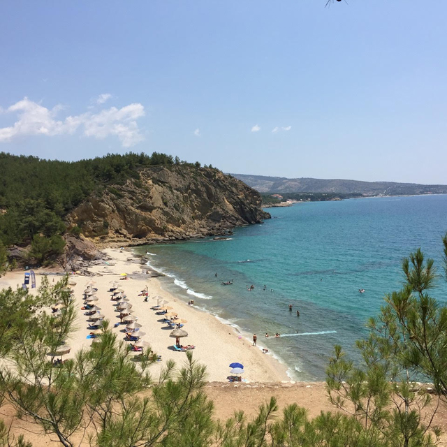 Χίλια χρόνια γράφω για τη Θάσο – πηγαίνω από παιδί, ως Καβαλιώτισσα, και την αγαπάω πολύ. Είναι ένα ήρεμο νησί: πολύ πράσινο, ασφαλές ακόμα, με ογδόντα παραλίες γύρω γύρω που η μια είναι καλύτερη από την άλλη. Έχει γαλάζια θάλασσα, πάρα πολλά πεύκα (όσο κι αν καίγεται…) και μοναδικό κλίμα – ακόμα κι όταν σκας από τη ζέστη την ημέρα, χρειάζεσαι ένα ζακετάκι το βράδυ, ναι, και τον Αύγουστο.