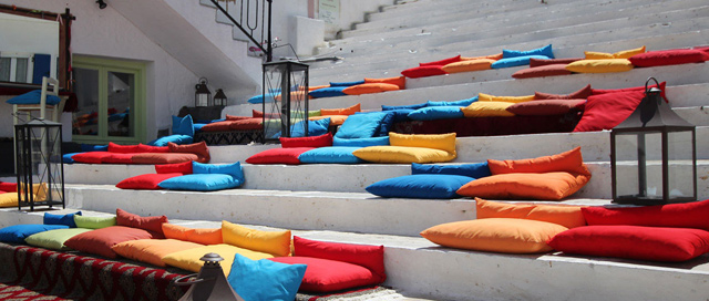 Το Steps Coctail and Wine Bar στη Χώρα, είναι επίσης μοναδικό. Απλώνεται σε ένα γραφικό, ασβεστωμένο μονοπάτι κάτω από τους Μύλους και γεμίζει τα νησιώτικα σκαλάκια με πολύχρωμες μαξιλάρες. Να έρθεις από το απόγευμα για καφέ, να πιεις cocktails ή κρασιά από τη Σαντορίνη, να κάτσεις κάτω από τον γεμάτο αστέρια ουρανό. Οι μουσικές κινούνται από rock μέχρι jazz μελωδίες, περισσότερο όμως «παρακολουθούν» τις παρέες. Συχνά γίνονται και βραδιές καραόκε που σε κάνουν να θες να παραγγείλεις το ποτό σου με ένα τραγούδι…και μπορείς!