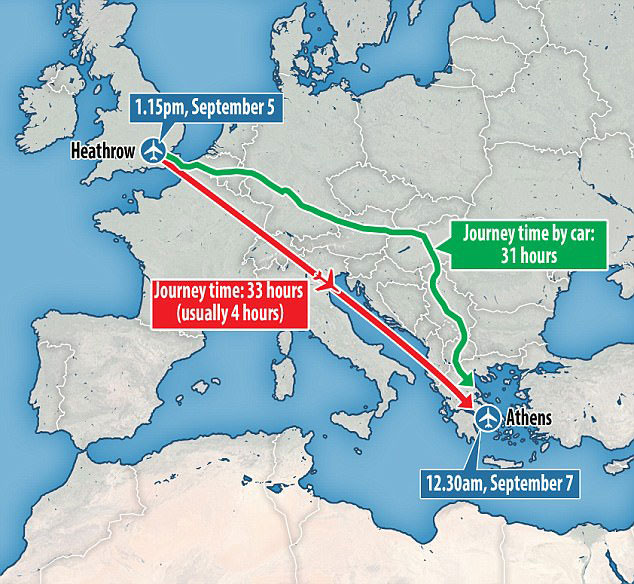 Όπως καταγγέλλει στην εφημερίδα Daily Mail ο Geoff Lye, μια απευθείας πτήση ρουτίνας που επρόκειτο να διαρκέσει 4 ώρες, εν τέλει διήρκησε 33 ώρες ενώ οι επιβάτες άλλαξαν 4 αεροπλάνα μεταξύ των οποίων κι ένα που πήρε φωτιά στον αέρα!
