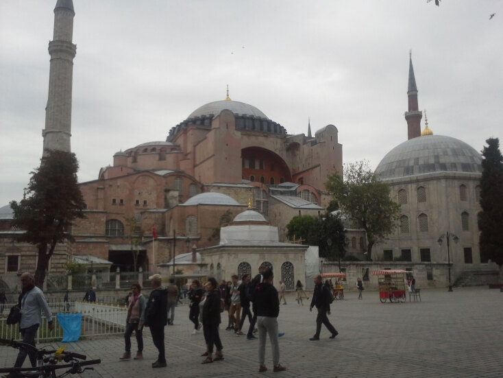 Η Αγια-Σοφιά μπροστά μας. Πανέμορφη, καθηλωτική, επιβλητική. Νομίζω ότι οι όποιες εκφράσεις μου δεν αρκούν για να την περιγράψουν. Και κάπου εκεί μία αίσθηση προσφυγιάς, ένα γιατί. Κάτι σαν ξεκλήρισμα και χωρίς να έχω την αίσθηση του ξεριζωμού μέσα μου βάσει DNA. Τουναντίον. Αλλά τώρα καταλαβαίνω.