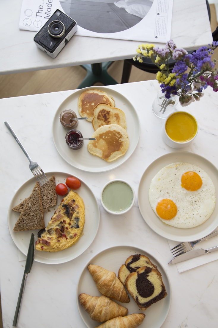 To πρωϊνό σερβίρεται στο υπέροχο roofgarden του Modernist, με μοναδική θέα της πόλης και με την υπογραφή της επιτυχημένης ομάδας του ΕΡΓΟΝ. Ολόφρεσκα αυγά, φυσικοί χυμοί, βιολογικά, τοπικά προϊόντα, υγιεινά σνακς, όλα ετοιμάζονται εκείνη τη στιγμή μπροστά στα μάτια σας στην open-plan κουζίνα. Στους κοινόχρηστους χώρους θα βρείτε τη reception με έμπειρους επαγγελματίες που θα σας βοηθήσουν ανά πάσα στιγμή, καθώς και μία boutique με branded σημειωματάρια, οδηγούς πόλης, βιβλία, souvenirs και φυσικά τις ειδικά σχεδιασμένες κούπες καφέ για να μεταφέρετε την εμπειρία πίσω στο σπίτι σας.