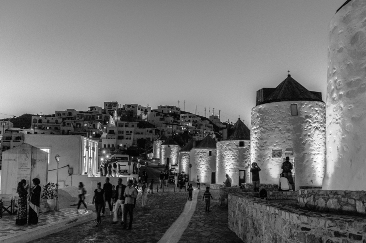 Το άλλο ενδιαφέρον στοιχείο του νησιού είναι ότι ο κόσμος εκεί διαβάζει. Και διαβάζει καλά βιβλία. Ο Σταύρος Πετσόπουλος, ο εκδότης του Άγρα, έχει κάποια σχέση με το νησί και προμηθεύει όλα τα καταστήματα με βιβλία. Καλοδιαλεγμένα, ό,τι πρέπει για διακοπές – εκεί βρήκα όλη τη σειρά με τα αστυνομικά του Σιμενόν. Υπάρχουν παντού: στα βιβλιοπωλεία, στα παλαιοπωλεία, στα μίνι μάρκετ, στα φαρμακεία, στους υπαίθριους πάγκους βιβλίων μέσα στη Χώρα και στις δύο δανειστικές βιβλιοθήκες του νησιού, την ελληνική και τη διεθνή, που στεγάζονται στην κεντρική πλατεία σε δύο ανεμόμυλους αντίστοιχα.