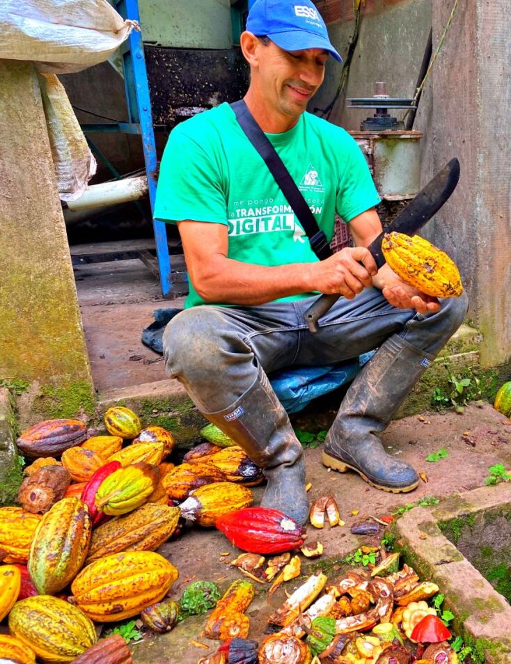 Τα τελευταία χιλιόμετρα μέχρι το San Vicente νιώθω κυριολεκτικά ότι πατάω τη γη της Εδέμ! Λοβοί, έτσι ονομάζουν οι εδώ αγρότες τον καρπό του κακάο, μετατρέπουν το ορεινό, πράσινο πανόραμα σε πολύχρωμη ακουαρέλα γεμάτη κόκκινους, κίτρινους και μωβ τόνους από τα σκληρά κελύφη αυτών των φρούτων, που ευλαβικά προστατεύουν τους σπόρους του κακάο. Από αυτούς και η μετέπειτα σοκολάτα. Δεκάδες πουλιά κυματίζουν ασταμάτητα μέσα στο δάσος, περιμένοντας να πέσει κάποιος λοβός και από το βάρος του να σπάσει την πανοπλία του για να ορμήσουν. Στην πόλη 35.000 Chucureños, κάτοικοί της, παράγουν τουλάχιστον 7.000 τόνους κακάο ετησίως. Κι αυτό δεν τους δόθηκε απλά από τη φύση. Καταγράφοντας δύο φορές την ημέρα τη μέγιστη θερμοκρασία και υγρασία των δέντρων αντιμετώπισαν τους βακίλους του, και έτσι έχουν προσπεράσει τη Βικιπαίδεια, ώστε πέρα από τις τρεις γνωστές ποικιλίες του φυτού δημιούργησαν άλλες τόσες, ανεβάζοντας την ποιότητα και ποσότητα του αγαπημένου σπόρου. Με δουλειά αφήνουν πίσω τα φαντάσματα και ορμάνε προς την πλήρη εντελέχεια.