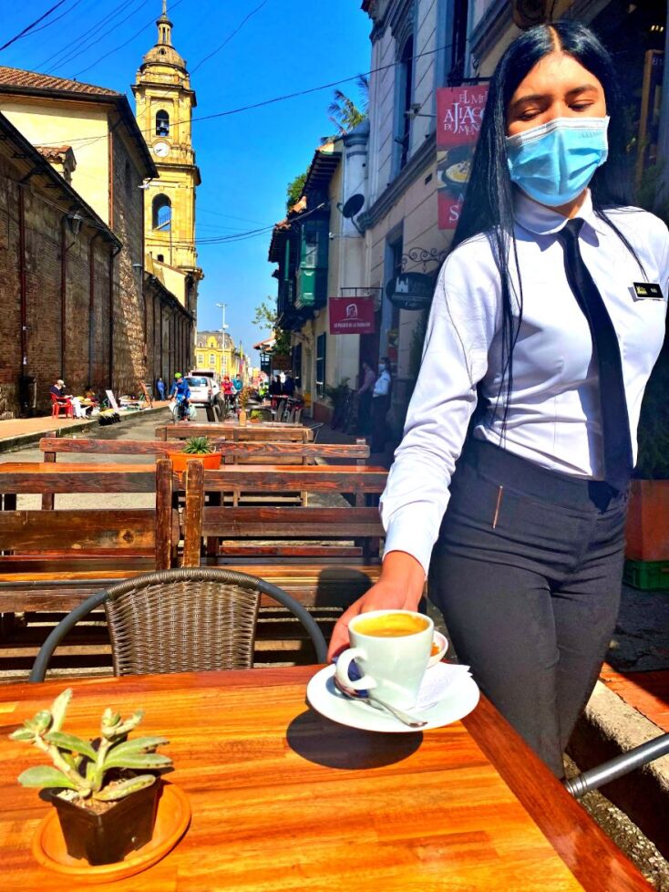 Στα μικρά μαγειρεία του δρόμου, δύο κιόλας χρόνια μετά τη γαστρονομική μου εμπειρία στα street food στο Περού, δοκίμασα τοπικά αρέπας, κάτι σαν τηγανίτες καλαμποκιού. Τραγανά με μαλακό τυρί και αυγό ή και chicharrón, το επίσης τηγανισμένο χοιρινό κοιλιάς. Και φυσικά τον ζεστό, χειμώνα - καλοκαίρι, καφέ της Κολομβίας. Είμαι στην πηγή. Τα υπαίθρια αυτά λιλιπούτεια «restaurant» είναι συνάμα και το κέντρο για ολιγόλεπτες στάσεις από τα πολλά βήματα της πόλης, για σύντομο κους-κους περαστικών. Εδώ γνώρισα τη δεύτερη κιόλας μέρα τον Ricardo.