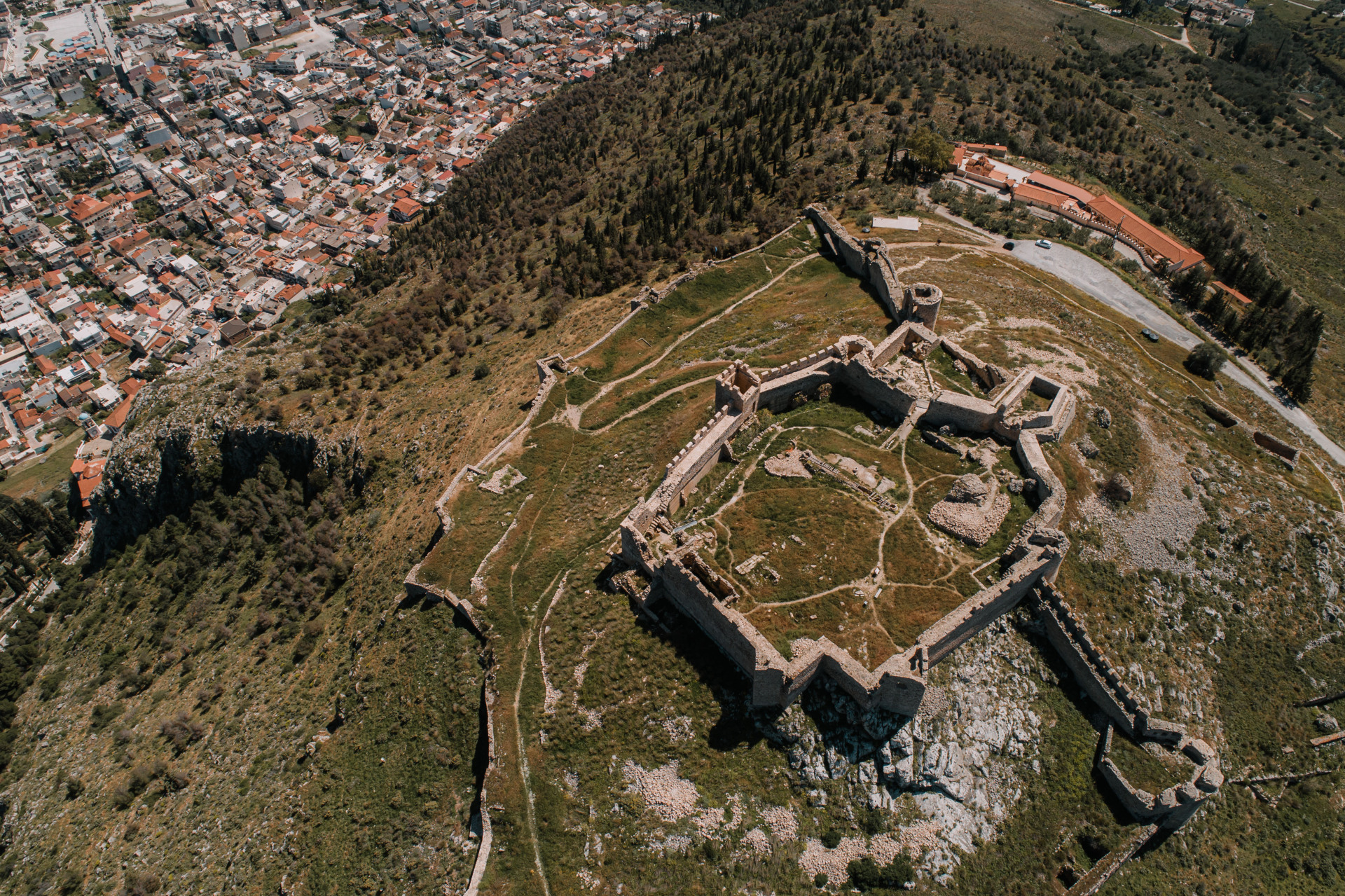 Όλα αυτά όμως σκεπάζονται από τη σκιά του «άγρυπνου φρουρού», του κάστρου στον λόφο που ονομάζεται Λάρισα. Μια αρχαία ακρόπολη που είχε ξεχωριστό στρατηγικό ρόλο τόσο κατά τον Μεσαίωνα όσο και την περίοδο της Τουρκοκρατίας. Υπάρχει ένας φιδογυριστός δρόμος για την ανάβαση σε αυτό με αυτοκίνητο, αλλά εγώ προτείνω την πεζοπορία μέσα από μια όμορφη, σύντομη διαδρομή (περίπου στα 300 μ.) που μυρίζει χαμομήλι και αν κουράσει λίγο... μετά σε αποζημιώνει διπλά και τριπλά με μια φανταστική θέα στον καταπράσινο αργολικό κάμπο, με πυργίσκους και πολεμίστρες για να περιηγηθείς ανάμεσά τους.