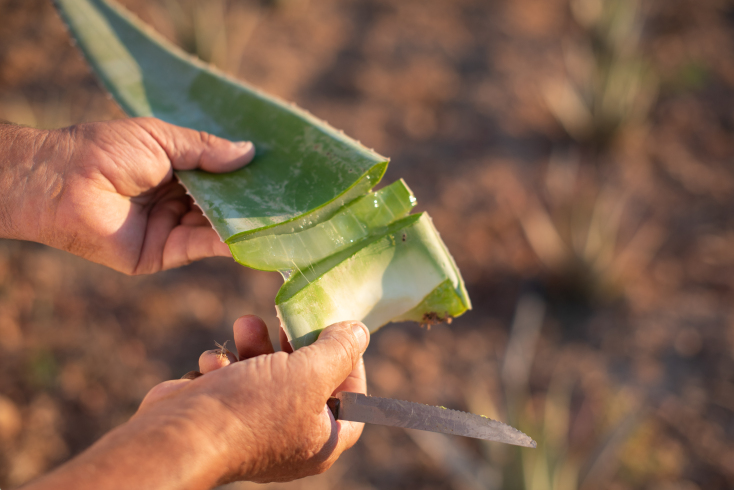 Η συγκέντρωση του θαυματουργού τζελ της αλόης που απλώνεται σε έναν τεράστιο εύφορο κάμπο γίνεται με χειρωνακτικό τρόπο
