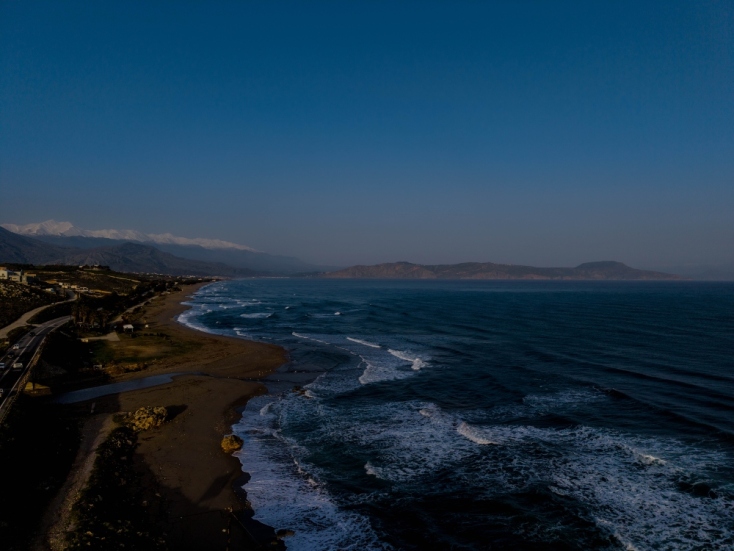 Χαρακτηριστικές στο δρόμο προς τα Σφακιά είναι οι συνεχόμενες τραβέρσες με γκρεμίλες και χαράδρες που από το βουνό φέρνουν το αυτοκίνητο στη θάλασσα με συνοπτικές διαδικασίες. Το Λιβυκό πέλαγος παγίδευε με την αντανάκλαση του δυνατού ήλιου τα μάτια μου. Από τη μια μου δυσκόλευε την κάθοδο και από την άλλη γοήτευε όλα μου τα ένστικτα αυτό το άπειρο φως μετά τον χθεσινό χειμώνα. Αρώματα θυμαριού και αγριορίγανης στη μύτη. Σε μια στροφή Ιταλοί είχαν στήσει υπαίθριο στούντιο φωτογράφισης με ποδηλάτες που κάναν τα μοντέλα ή με μοντέλα που κάναν τους ποδηλάτες. Δε ρώτησα· μια εικόνα μόνο έκλεψα φεύγοντας και άλλη μια με το δρόμο πιο κάτω και μία τελευταία με τα προκλητικά κατσίκια δίπλα στην άσφαλτο. Δεν έλειψε φυσικά η must φωτογραφία της τρυπημένης από μπαλωθιά ταμπέλας.