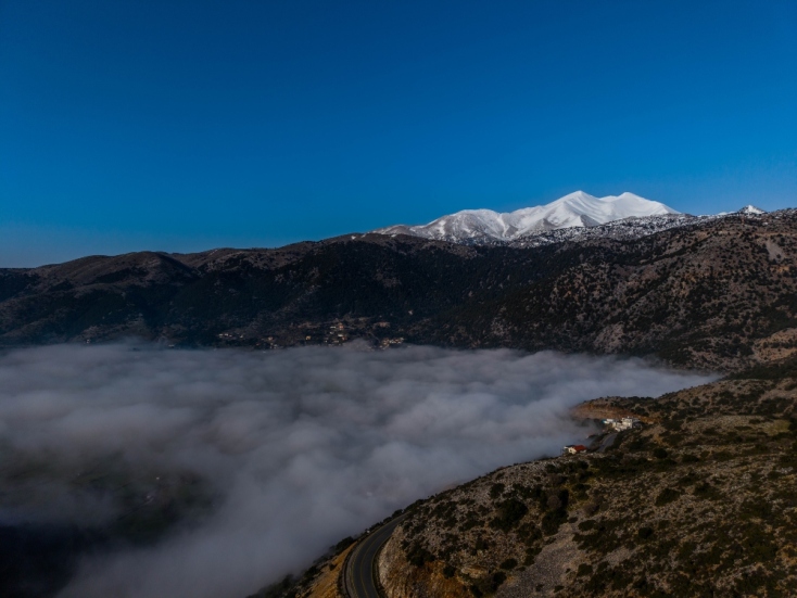 Η τελευταία υπενθύμιση του χειμώνα ήρθε κοντά στα πενήντα χιλιόμετρα μετά τα Χανιά όταν αντίκρυσα το Οροπέδιο του Ασκύφου, αυτό που τυπικά ενώνει τις νότιες ακτές των Σφακίων με τα βόρεια παράλια της Κρήτης. Αναδυόταν μέσα από το τύλιγμα της ομίχλης κάνοντας τα μάτια να κολλάνε εκεί και μόνο εκεί. Εκπληκτική εικόνα για να τη ζεις αυτά τα λευκά κύματα που ερωτοτροπούσαν με τις ανόθευτες κορφές. Οι Τούρκοι είχαν τσιμπήσει αυτό το στρατηγικό σημείο του χάρτη και έστησαν Κουλέδες -φρούρια- ώστε να ελέγχουν τοὺς μανιασμένους τότε για ελευθερία κρητικούς. Δύο τέτοια κτίσματα βρέθηκα να θαυμάζω παρόλη την εγκατάλειψή τους στο χρόνο. Στην πάλη τους με τους συμπυκνωμένους υδρατμούς και μέσα από την πλήρη έλλειψη σαφήνειας του χώρου, μου προκαλούσαν ακόμη περισσότερο τη φαντασία, ώστε τελικά να εναρμονίσω την όλη ιστορία με τη μικρή επανάσταση της σημερινής άνοιξης, που εδώ, πάνω από το χωριό Γωνί μου είχε κλείσει ραντεβού. Ακόμη πιο ψηλά φωτισμένα στον ήλιο έλαμπαν τα Λευκά Όρη σε μια απρόβλεπτη συνοχή με το χαμηλό ομίχλωμα της εικόνας. Επιβλητικές προεξοχές της φύσης με μια λευκή και ανόθευτη επιφάνεια που σε προκαλούν σε έναν ήσυχο διάλογο με το ανέφελο διάστημα.