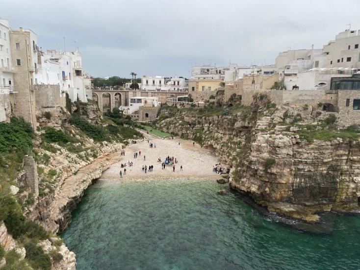 Στην επιστροφή μας από το Άλμερμπέλο περάσαμε από το Πολινιάνο για βόλτα, καφέ και παγωτό. Τον καφέ τον ήπιαμε όρθιοι, όπως συνηθίζεται στην Ιταλία, με ένα σφηνάκι νερό, σε ένα παραδοσιακό «μπαρ» το οποίο ήταν πάνω από 100 ετών, αλλά από άποψη ντεκόρ είχε μείνει λίγες δεκαετίες πίσω, στο 1980. Όπως πάντα, ο καφές ήταν απαλός σε γεύση αλλά ταυτόχρονα δυνατός σε ένταση, και ακριβώς ότι χρειαζόμασταν για να συνεχίσουμε.