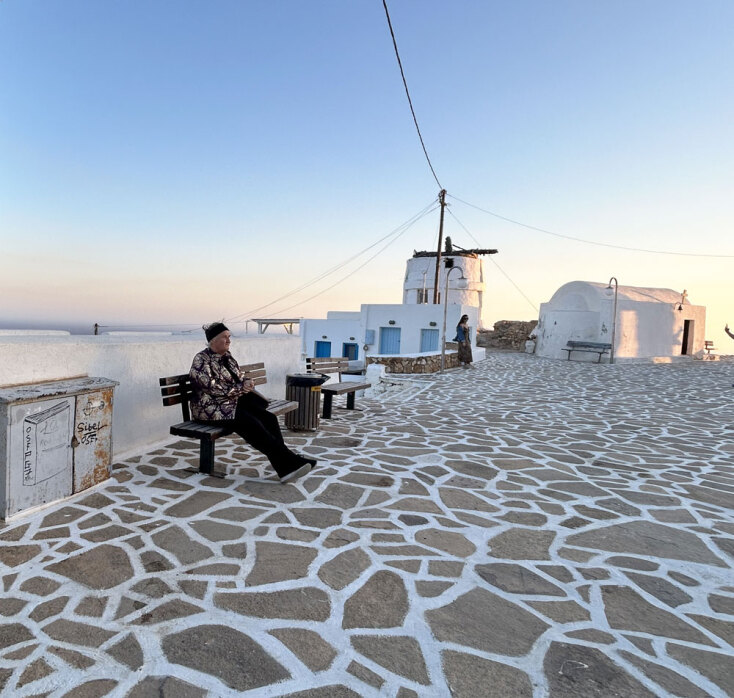 Οι παραλίες του νησιού είναι πανέμορφες –από τις πιο απίστευτες παραλίες που έχω δει στη ζωή μου–, όμως εγώ ήθελα, ξανά και ξανά, να περάσω όλο μου τον χρόνο στην κορυφή του. Γιατί είναι εκθαμβωτικό το να κάθεσαι στην πλατεία της Χώρας μέρα μεσημέρι και να σε λούζει ο ήλιος, ενώ διαβάζεις ή γράφεις ποίηση. Αυτή η πλατεία γέμιζε καμιά φορά με ζωντανή μουσική και νοστιμότατο φαγητό τα βράδια.
