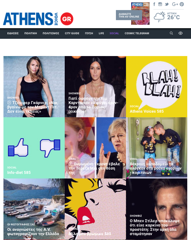 Για να ξέρετε τι τρέχει στο ελληνικό και διεθνές ίντερνετ. Τα viral της ημέρας, η παγκόσμια showbiz, αλλά και οι φωτογραφίες σας από την κοινότητα της A.V. των 90.000 followers στο Instagram, κείμενα που μας στέλνετε και διαγωνισμοί με τα καλύτερα δώρα.