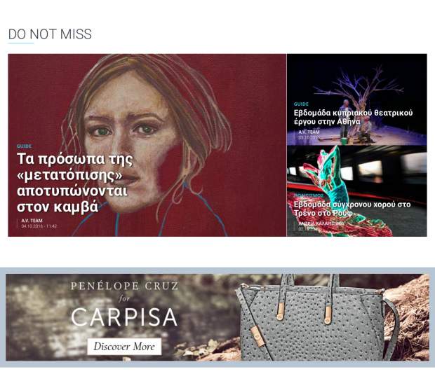 Με την πολύτιμη συνεργασία της Interweave φτιάξαμε ένα site ασυνήθιστο, που ξαφνιάζει. Το εμπλουτίζουμε συνεχώς με νέες στήλες, νέες υπογραφές, νέους τομείς. Και είναι σχεδιασμένο κυρίως για την πιο σημαντική οθόνη της ζωής σου, το smartphone.