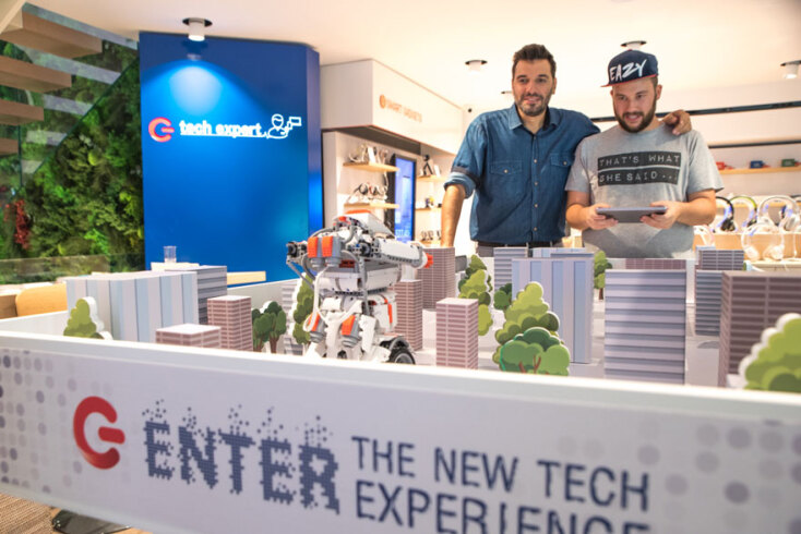 Αποφασίσαμε να παίξουμε στο Smart Escape Room, από το οποίο αποδράσαμε μέσω της χρήσης «έξυπνων συσκευών», και στη συνέχεια δοκιμάσαμε τις δεξιότητές μας στον χειρισμό ρομπότ στην ειδικά διαμορφωμένη πίστα με εμπόδια του The Robot Challenge και αφήσαμε για το τέλος το αγαπημένο μου Ride the Waves Spot, όπου σερφάρεις πάνω στο υδραυλικό surfstand φορώντας smartwatch σαν να είσαι στο Μαϊάμι. Εντάξει, ομολογώ ότι από το σερφ δεν ξεκόλλαγα με τίποτα, έχε χάρη που περίμεναν κι άλλοι να το δοκιμάσουν, αλλιώς ακόμα εκεί θα ήμουν! Δεν το συνηθίζω, αλλά πρέπει να παραδεχτώ ότι ο φίλος μου είχε δίκιο. Αυτή η έξοδος ήταν ό,τι καλύτερο είχα κάνει τελευταία και τελικά όχι μόνο άνοιξε ένα μέρος που αλλάζει τον τρόπο που βιώνεις την τεχνολογία αλλά βρίσκεται και δίπλα μας. Φυσικά, όπως σε όλα τα καταστήματα ΓΕΡΜΑΝΟΣ, λειτουργεί και πιστοποιημένο service point για εξουσιοδοτημένο σέρβις και επισκευές σε smartphones, tablets, laptops, wearables και drone συσκευές.