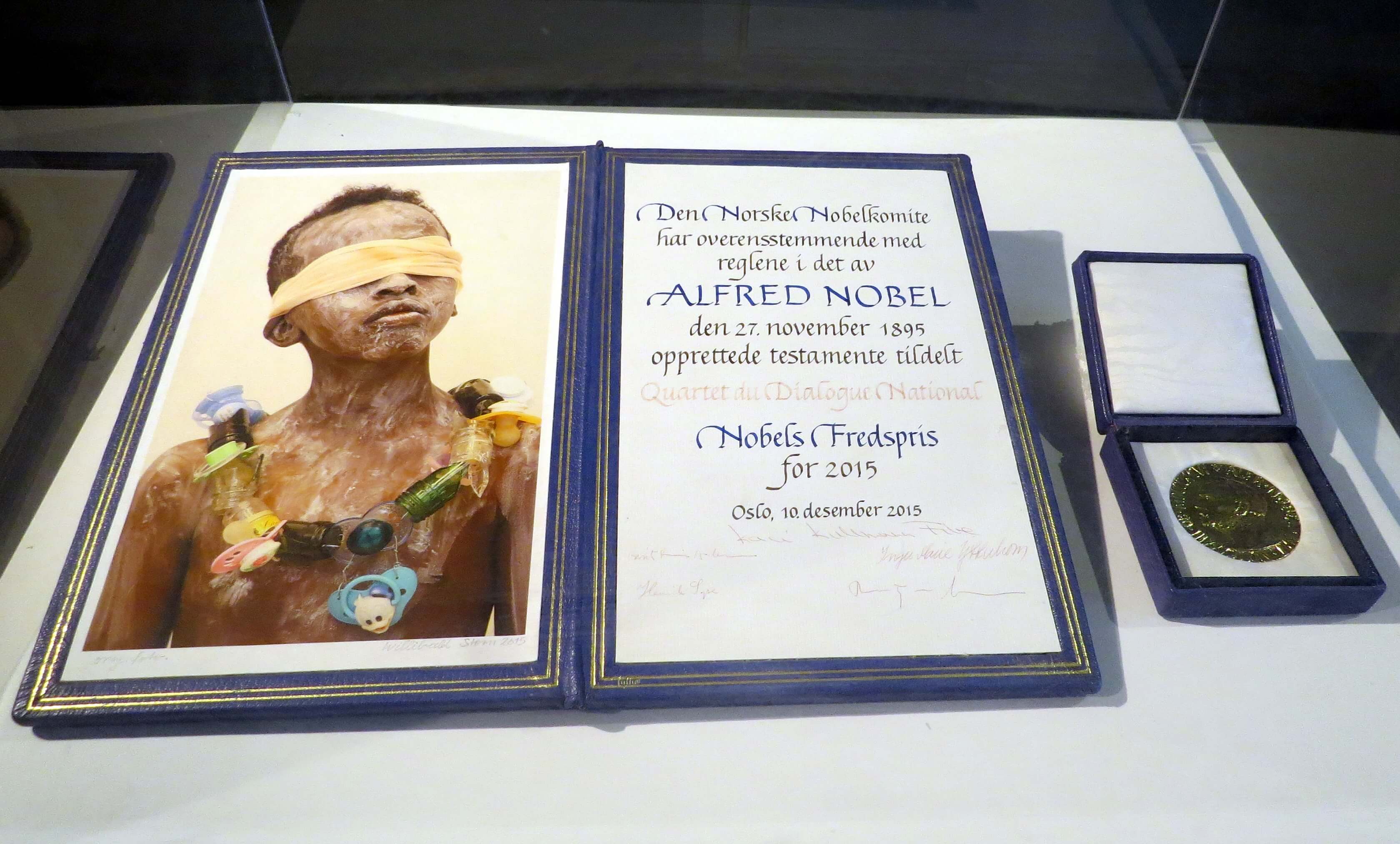 Διαβάζοντας τα ονόματα των θυμάτων στο λιτό μνημείο της εισόδου, τα πρώτα βήματα του ξένου επισκέπτη προς τα εκθέματα του μουσείου είναι γεμάτα θλίψη. Στα δεξιά του όμως, θα συναντήσει μια μικρή προθήκη που θα τον κάνει να πιστέψει ξανά στη δύναμη των ανθρώπων να γράφουν Ιστορία. Τον Οκτώβριο της ίδιας χρονιάς των τρομοκρατικών επιθέσεων, το Νόμπελ Ειρήνης απονεμήθηκε στο «Κουαρτέτο» της Τυνησίας, δηλαδή σε 4 ισχυρές οργανώσεις της χώρας που εγγυήθηκαν τη μετάβαση στη δημοκρατική ομαλότητα μετά την πτώση του Μπεν Άλι. Πρόκειται για τη Συνομοσπονδία Εργατών, τον Σύνδεσμο Βιομηχάνων, τον Δικηγορικό Σύλλογο και την Οργάνωση Προστασίας Ανθρωπίνων Δικαιωμάτων.