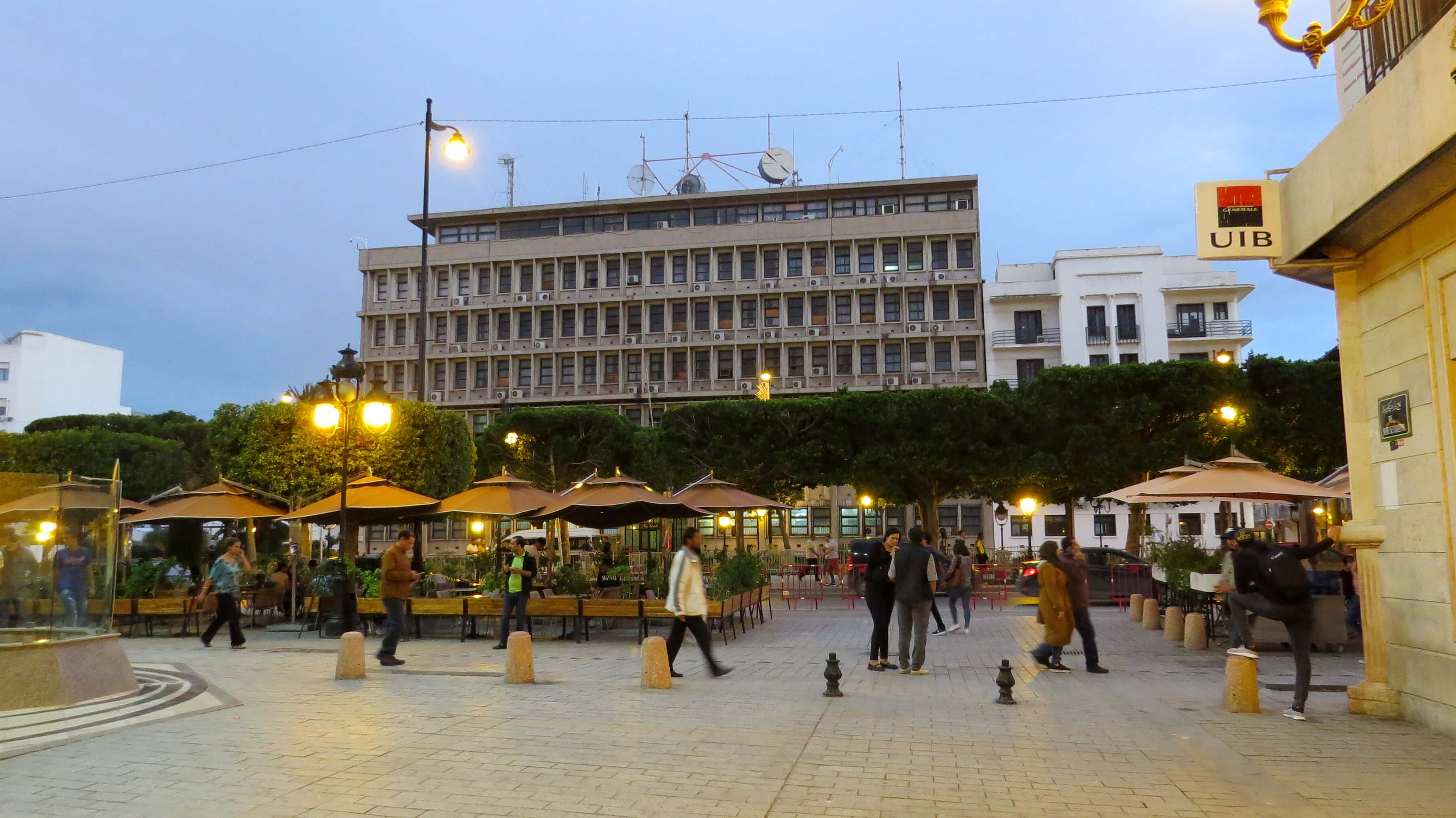 Συναντηθήκαμε στην πλατεία με τον μεγάλο πύργο του ρολογιού, την οποία θυμόμουν από τα τηλεοπτικά πλάνα των οργισμένων διαδηλώσεων που ακολούθησαν μετά την αυτοπυρπόληση του Μοχάμεντ Μπουαζιζί. Πλέον φέρει το όνομα «Πλατεία 14ης Ιανουαρίου 2011», της ημέρας δηλαδή που έφυγε ο Μπεν Άλι. Το πρώτο κτήριο που μου έδειξε ήταν αυτό του υπουργείου Εσωτερικών, τονίζοντας μου ότι όσοι έμπαιναν εδώ κατά την εποχή του πρώην δικτάτορα, σπάνια έβγαιναν ζωντανοί ή έστω αλώβητοι. Παρατήρησα βιαστικά την…σοβιετική αισθητική του και την βρήκα απόλυτα ταιριαστή για ένα κτήριο βασανιστηρίων και μαζικών παρακολουθήσεων.