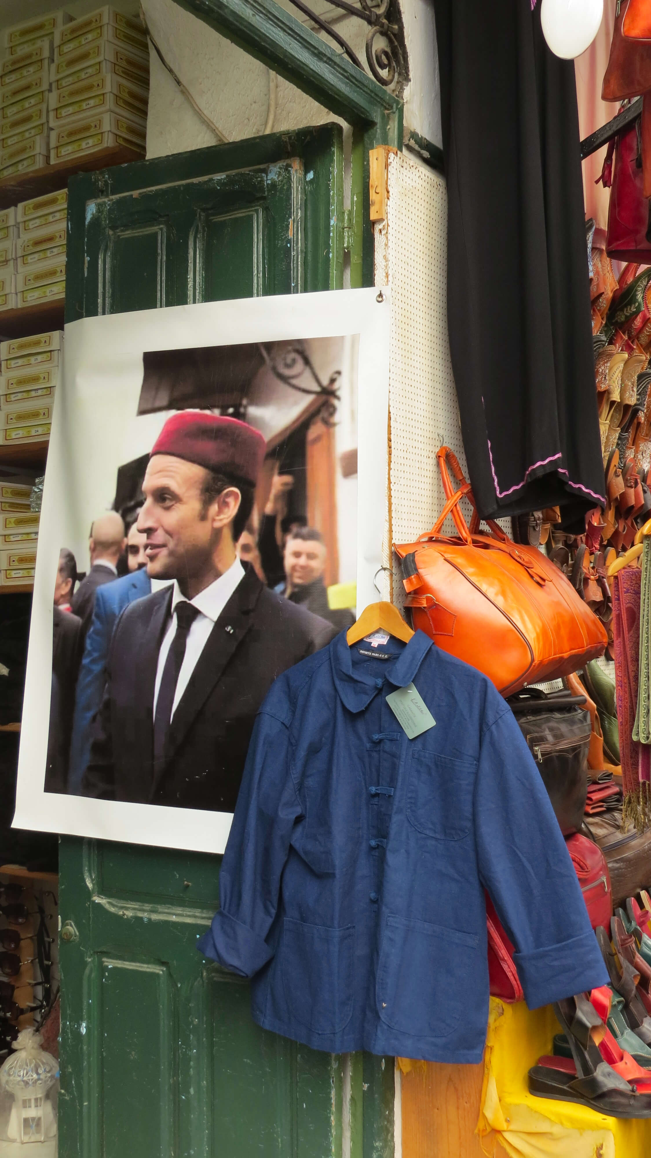 Η πολύχρωμη μεντίνα και το φέσι του Μακρόν