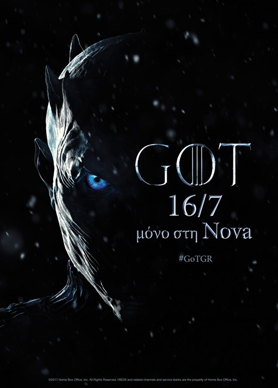 Ο 7ος πολυαναμενόμενος κύκλος της συναρπαστικής σειράς της HBO, «Game of Thrones» κάνει πρεμιέρα την Κυριακή, 16 Ιουλίου στις 4:00 μετά τα μεσάνυκτα ταυτόχρονα με την Αμερική και με ελληνικούς υπότιτλους αποκλειστικά στη Nova! Η επική σειρά θα προβάλλεται και σε prime time προβολή από τη Δευτέρα 17 Ιουλίου και κάθε Δευτέρα στις 22.00 στο Novacinema4HD. Ο νέος κύκλος θα είναι διαθέσιμος και μέσω των υπηρεσιών Nova On Demand και Nova GO.
