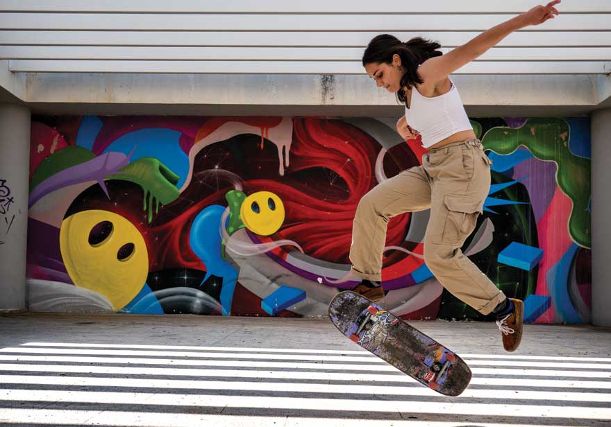 Σε γήπεδα, αλάνες, πάρκινγκ, στο ΟΑΚΑ. Συνήθως πηγαίνω μόνη. Μου αρέσει η μοναχικότητα που έχει το longboard.