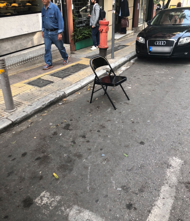 Μπα! Πρόσφατα συνειδητοποίησα ότι και αυτός ο χώρος στην πραγματικότητα ανήκει στον τύπο που στο συγκεκριμένο σημείο έχει μαγαζί, εταιρία κούριερ, καφέ και -για να το πω απλά- δεν γουστάρει να βλέπει, ρε παιδί μου, αυτοκίνητα μπροστά του… Αποφάσισα επί 1 μήνα να φωτογραφίζω τι αντίκριζα νωρίς το πρωί στις θέσεις ελεγχόμενης στάθμευσης στην Ιπποκράτους, για παράδειγμα, τη Ναυαρίνου, αλλά και τους γύρω δρόμους του κέντρου… Το τονίζω: οι 20 φωτογραφίες που ακολουθούν τραβήχτηκαν σε 1 μόλις μήνα!