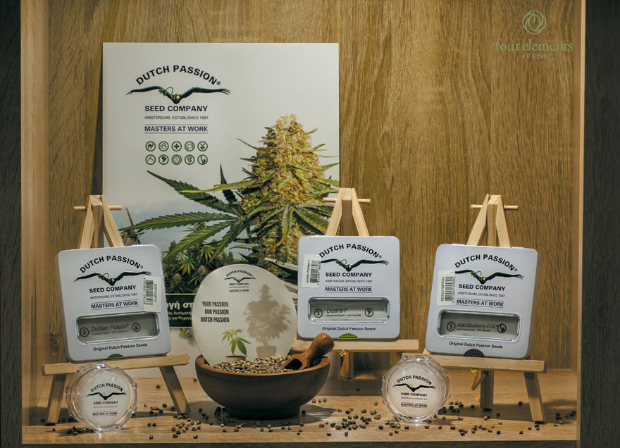 Αέρας, γη, νερό και φωτιά, τα τέσσερα απαραίτητα στοιχεία για τη ζωή ενέπνευσαν το όνομα του Four Elements Seeds, το κατάστημα-προορισμό για τους συλλέκτες σπόρων κάνναβης. Έχοντας συνεργαστεί για χρόνια με τράπεζα σπόρων στο Άμστερνταμ, η Ευτυχία επέστρεψε στην Αθήνα και έφερε μαζί της την απαραίτητη κουλτούρα και τεχνογνωσίαγια να δημιουργήσει μαζί με τον σύζυγό της Σταύρο ένα από τα πιο ενημερωμένα καταστήματα προϊόντων κάνναβης. Εδώ οι συλλέκτες του είδους θα βρουν εξαιρετικά γενετικά, άμεσα διαθέσιμα από 18 εταιρείες, όπως Barney’s Farm, Dutch Passion ή Sensi Seeds, ενώ μπορούν να προμηθευτούν και περισσότερους σπόρους κατόπιν παραγγελίας.