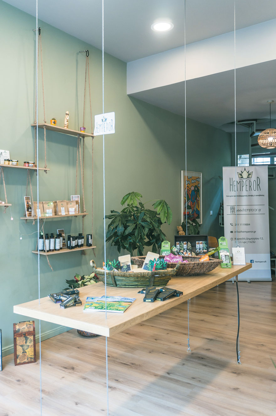 Σε ένα πολύ προσεκτικά σχεδιασμένο χώρο στο Χαλάνδρι, χτισμένο μάλιστα από ανακυκλωμένο ξύλο, θα βρεις το κατάστημα Hemperor και ο τρόπος ζωής σου θα βελτιωθεί με το που κάνεις το πρώτο βήμα στο εσωτερικό του. Εδώ και έναν περίπου χρόνο το Hemperor προσφέρει στο ελληνικό κοινό προϊόντα βιομηχανικής κάνναβης και κανναβιδιόλης, σε μία τεράστια ποικιλία και στην καλύτερη ποιότητα της αγοράς. Μπορείς να βρεις τα πάντα, από όμορφες τσάντες και αξεσουάρ που δεν επιβαρύνουν το περιβάλλον, μέχρι άπειρες επιλογές σε βιολογικά τρόφιμα που όχι μόνο είναι vegan και χωρίς γλουτένη αλλά έχουν τρομερές ευεργετικές ιδιότητες για τον οργανισμό. Μην ξεχνάμε άλλωστε πως η βιομηχανική κάνναβη είναι ένα πραγματικό super food, πλούσιο σε λιπαρά οξέα, μαγνήσιο, σίδηρο και μικρότερη ποσότητα βιταμινών Α και Β που μας χαρίζουν διαύγεια και συγκέντρωση, ακόμα και κάτω από συνθήκες πίεσης.