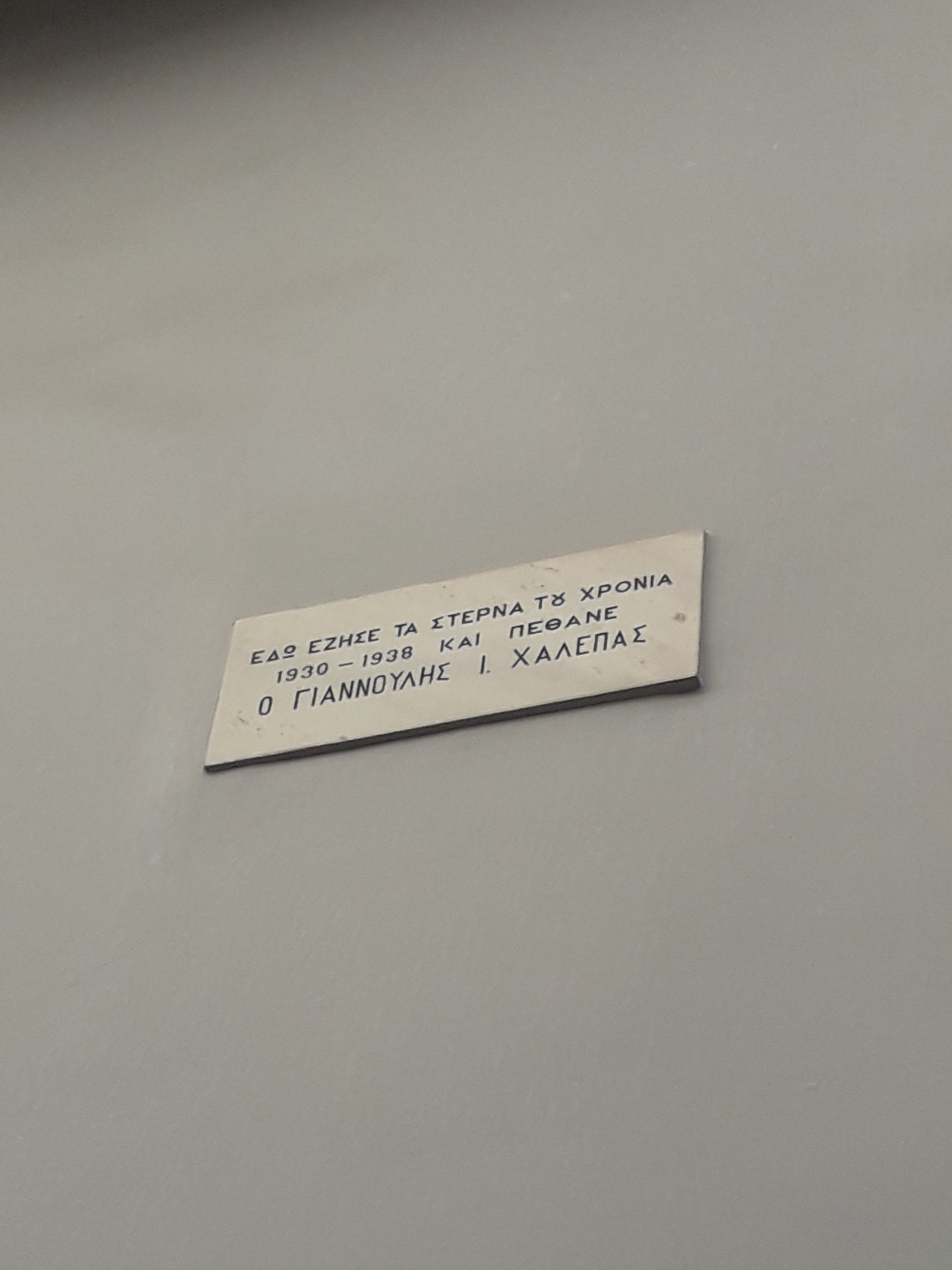 «Εδώ έζησε τα στερνά του χρόνια και πέθανε ο Γιαννούλης Ι. Χαλεπάς», λέει η επιγραφή στο 35 της οδού Δαφνομήλη, Κολωνάκι