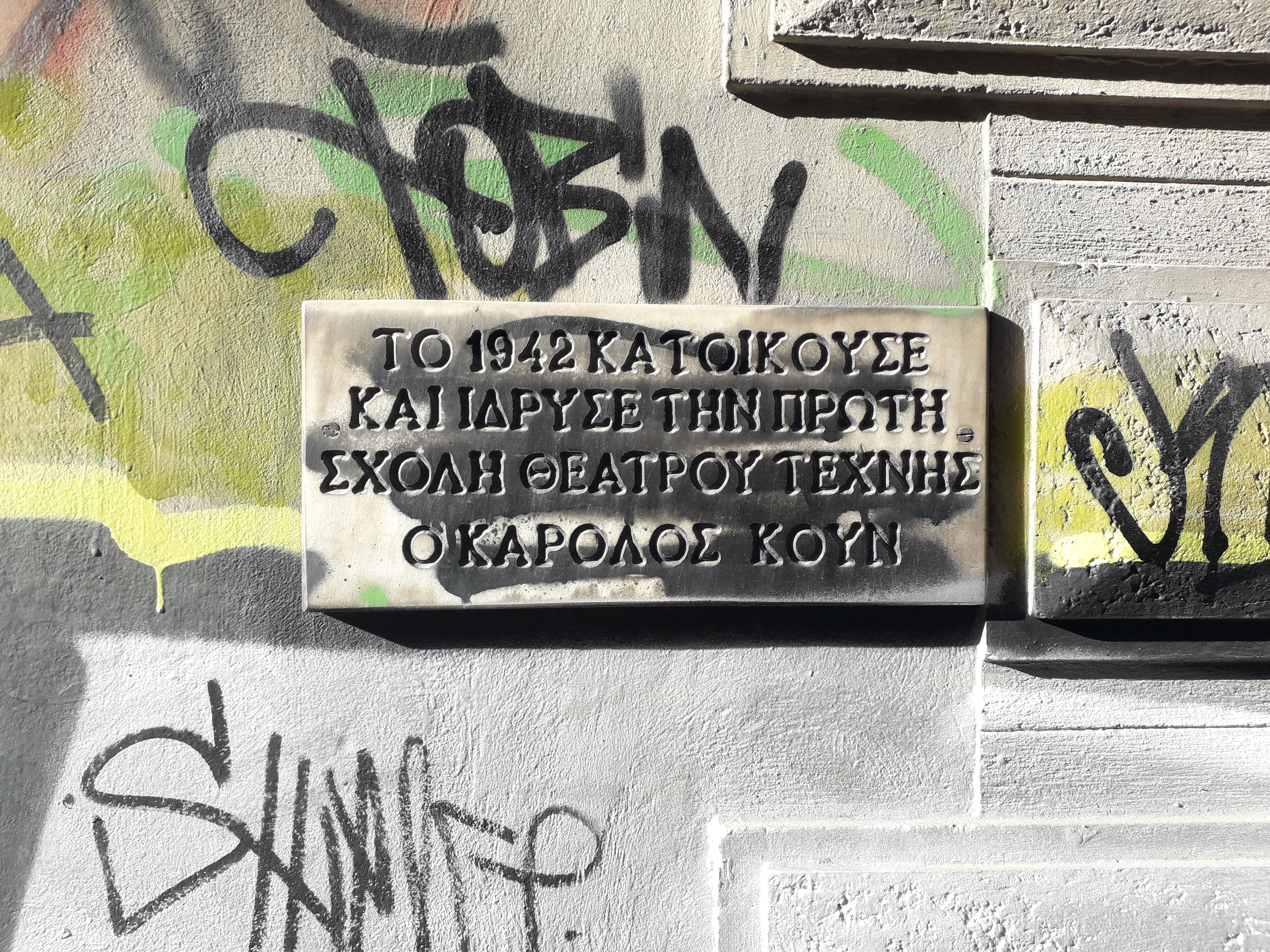Στη συμβολή των οδών Ζωοδόχου Πηγής και Σόλωνος ο Κάρολος Κουν ίδρυσε την σχολή Θεάτρου Τέχνης, όπως ενημερώνει η πλακέτα στο εξωτερικό του κτιρίου, που δυστυχώς είναι βαμμένη με μαύρο σπρέι, «Το 1942 κατοικούσε και ίδρυσε την πρώτη σχολή θεάτρου ο Κάρολος Κουν».