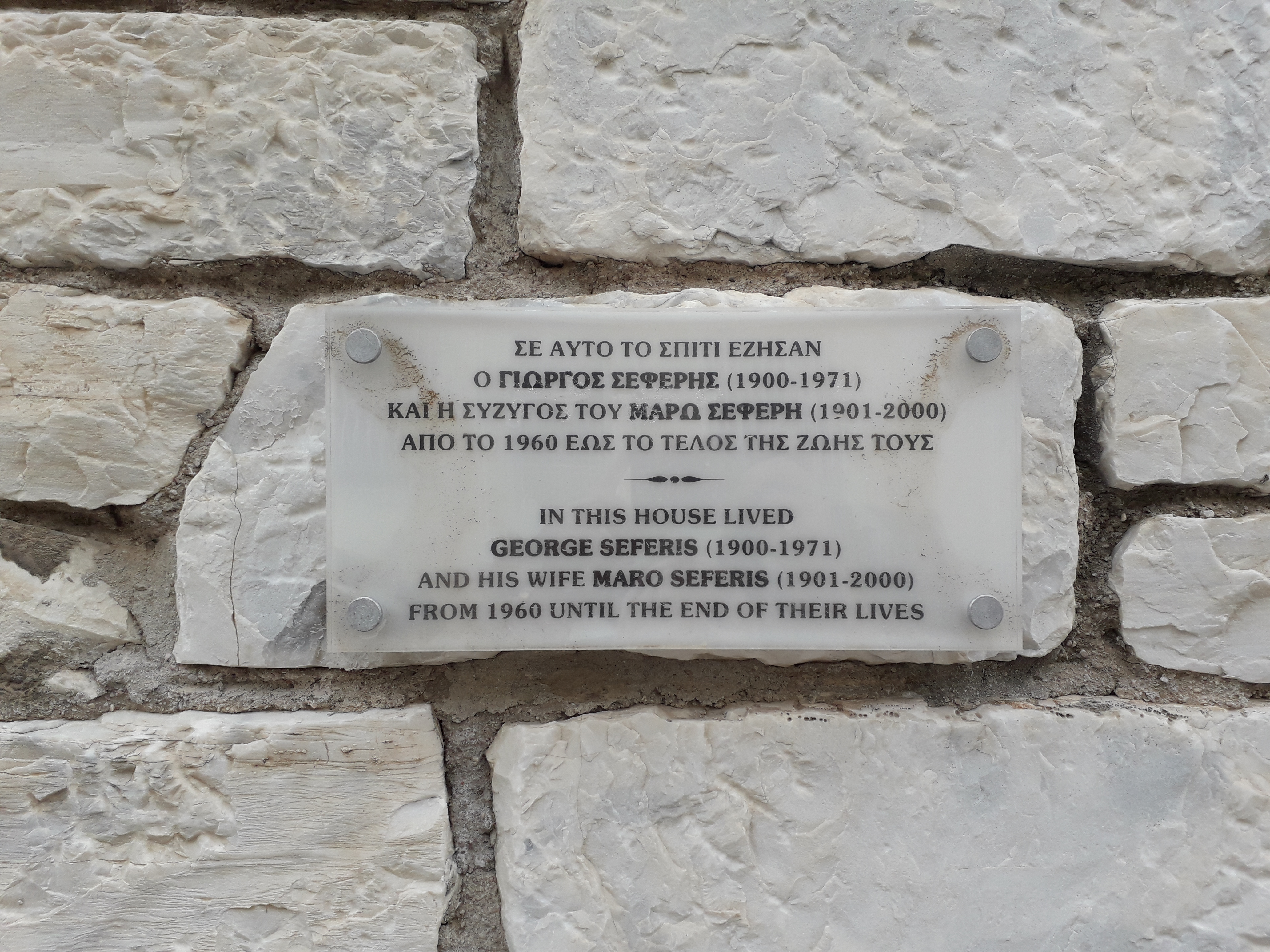 Η πλακέτα έξω από το κυκλαδίτικο σπίτι του Μετς γράφει «Σε αυτό το σπίτι έζησαν ο Γιώργος Σεφέρης και η σύζυγός του Μάρω Σεφέρη από το 1960 έως το τέλος της ζωής τους» και προστέθηκε στην πέτρινη μάντρα μόλις την τελευταία τριετία.
