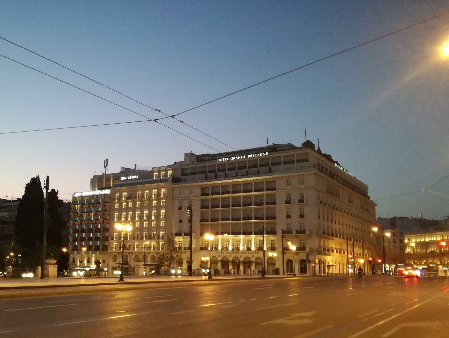 Δίπλα στη «Μεγάλη Βρετανία», υπάρχουν άλλα δύο πολυτελή ξενοδοχεία, με θέα την πλατεία Συντάγματος, το King George και το Athens Plaza. Στην θέση του πρώτου, ήταν η πολυτελής οικία του οικονομολόγου και πολιτικού, Στέφανου Σκουλούδη, ο οποίος είχε διατελέσει πρωθυπουργός την περίοδο 1915-1916. Η οικία κατεδαφίστηκε το 1930 και το ξενοδοχείο King George πρωτολειτούργησε το 1936.