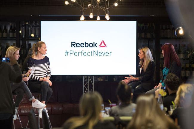Λίγες μέρες μετά, φτάνω στο καφέ του Attica φορώντας το αγαπημένο μου τζιν, ένα πουκάμισο και φυσικά τα καινούργια μου sneakers (τα οποία δεν έχω βγάλει από πάνω μου όλη την εβδομάδα). Εκεί συναντώ τους ανθρώπους της Reebok, συνάδελφους δημοσιογράφους, γνωστές bloggers, celebrities και fitness experts. Ο χώρος φαίνεται πολύ διαφορετικός, αφού στην είσοδο υπάρχουν μπαλόνια με λέξεις-κλειδιά, όπως «επιμονή», «δύναμη», «έμπνευση», στο βάθος υπάρχει ένα πάνελ και λίγο πιο δεξιά ένα λουλουδένιο backdrop με μια φωτεινή επιγραφή «Perfect Never».
