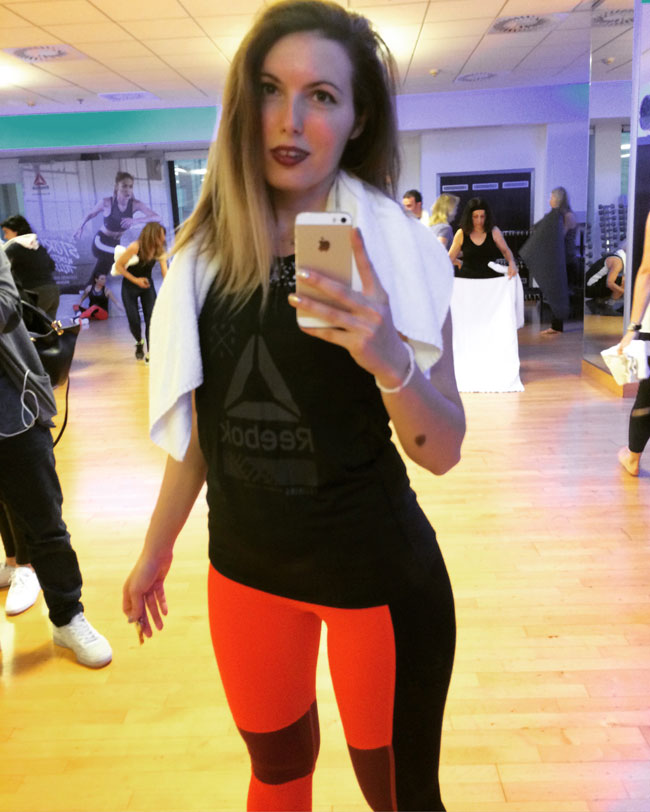 Το ίδιο μπαίνοντας και στο γυμναστήριο. Στην υποδοχή μας δίνουν πετσέτες και λουκέτο για το ντουλαπάκι και μας οδηγούν στα υπερλούξ αποδυτήρια που διαθέτουν καθρέφτες, πιστολάκια για στέγνωμα μαλλιών, ντουζιέρες, σάουνα και πού να σας τα λέω. Κολάν, αθλητικό σουτιέν, ριχτή αμάνικη μπλούζα και αθλητικά παπούτσια. Τη στιγμή που φοράω τα ρούχα που βρήκα στη σακούλα παρατηρώ τις υπόλοιπες κοπέλες και πόσο αδύνατες είναι οι περισσότερες. Ευτυχώς η υφή των ρούχων είναι πολύ απαλή και η εφαρμογή εξαιρετική και νιώθω ήδη πιο fit.