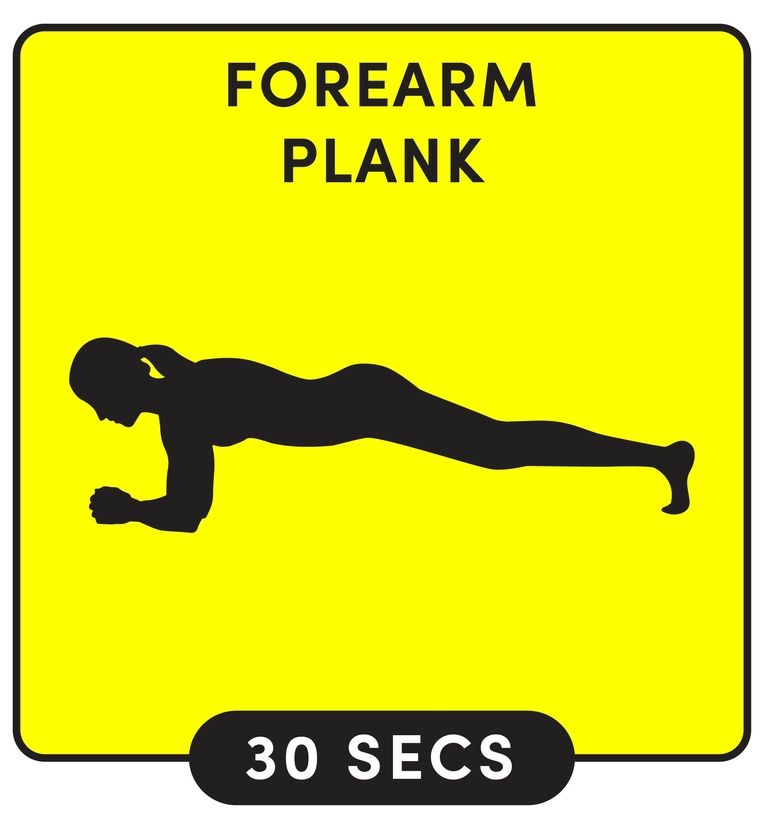 Το σώμα σου πρέπει να σχηματίζει μία ίσια γραμμή, από το κεφάλι εώς τα πόδια σου και το στήθος να ευθυγραμμίζεται με τους αγκώνες. Κράτησε την θέση σου για 30 δευτερόλεπτα.