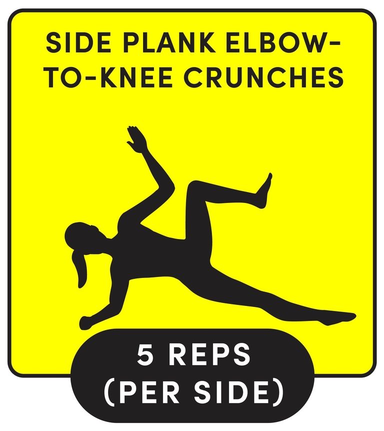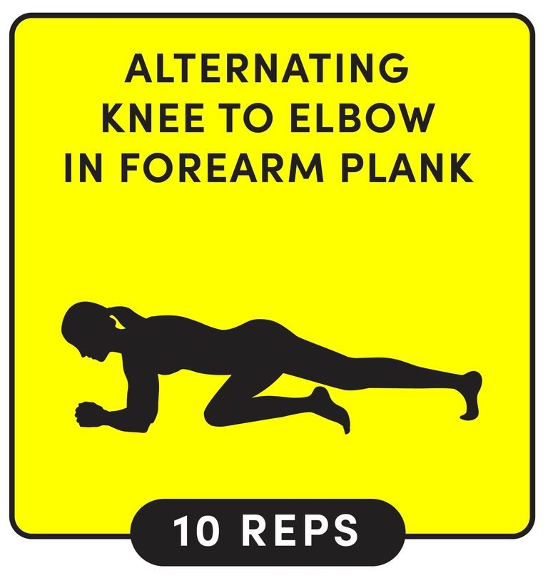 Ενώ είσαι σε θέση σανίδας στους αγκώνες, φέρε το αριστερό γόνατο στον αριστερό αγκώνα και στην συνέχεια το δεξί. Κάντο για πέντε φορές σε κάθε μεριά.
