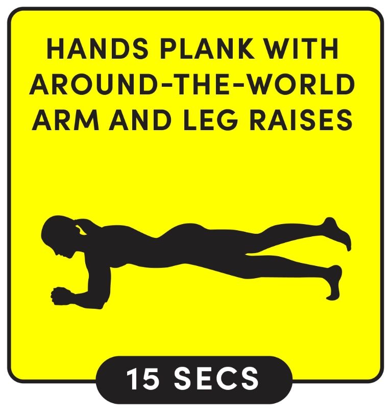 Ενώ κάνεις σανίδα, ανασήκωσε το δεξί χέρι και μετά το αριστερό. Στην συνέχεια κάνε το ίδιο με το κάθε ένα από τα πόδια σου και συνέχισε για 15 δευτερόλεπτα.