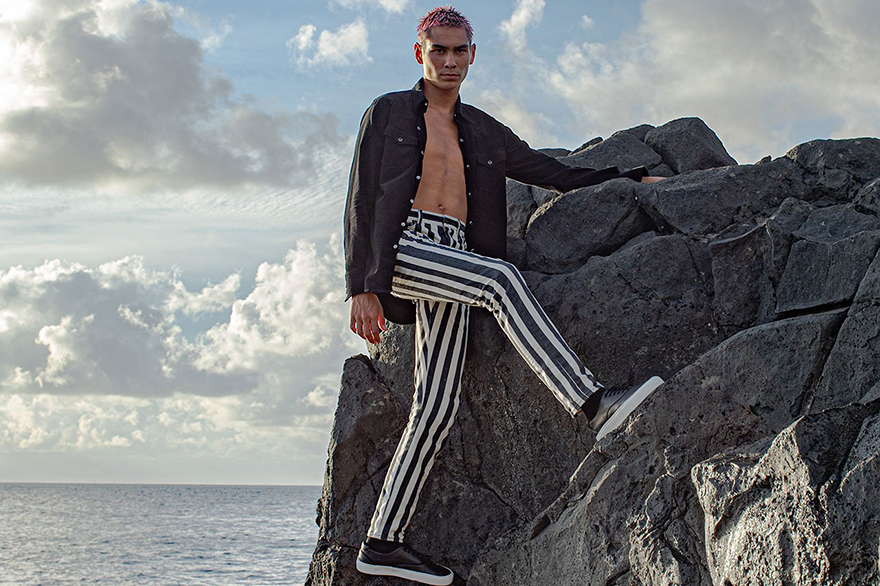 Εκείνος όμως, αν ήταν να διαλέξει, δε θα φορούσε ούτε παπούτσια, ούτε μπλούζα, παρά μόνο ένα σορτς για σερφ. Ή ρούχα του σκέιτ που αγαπά ακόμη να κάνει στο Banzai Skate Park στη Χαβάη, λίγο πιο κάτω από το πατρικό του. Γι’ αυτό και γουστάρει τις συλλογές που κάνει με την εταιρεία RVCA, με έδρα το Los Angeles. «Είναι πραγματικά ξεχωριστά γιατί είναι συνυφασμένα με την οικογενειακή μου κληρονομιά και την ιστορία της Χαβάης». Ρούχα κλασικά με vitnage αισθητική, σαν τα έχεις αγοράσει από το ebay: hoodies, τζάκετ, παντελόνια και πουκάμισα που μυρίζουν αλμύρα Χαβάης.