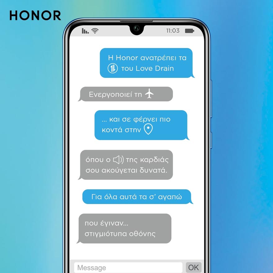 H Ηonor λέει ένα μεγαλοπρεπέαστατο ΌΧΙ στο Love Drain και δημιούργησε έναν διαγωνισμό - όπου μπορείς να ταγκάρεις τον αγαπημένο σου που βρίσκεται μακριά - και να κερδίσεις ένα ταξίδι από την Honor στον προορισμό του και ένα κινητό Ηonor 10 Lite για να απαθαντίσεις την στιγμή που θα βρεθείτε.