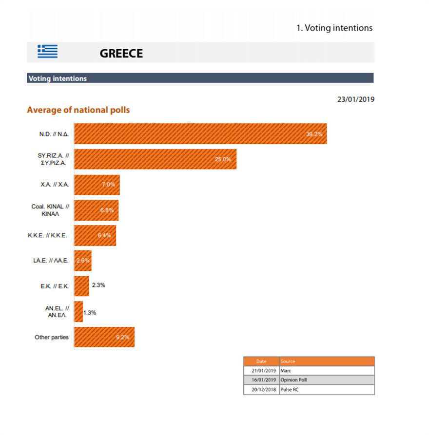 Το άκρως ενδιαφέρον για την Ελλάδα είναι ότι η έκθεση του ευρωκοινοβουλίου βλέπει πολύ ψηλά τη ΝΔ, εντός του στόχο της αυτοδυναμίας και συγκεκριμένα στο 39,2%.