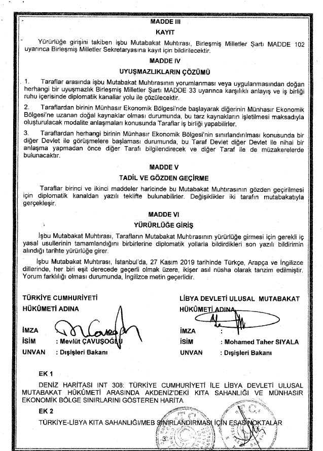 Από την πλευρά του ο υφυπουργός Εξωτερικών της Τουρκίας Γιαβούζ Σελίμ Κιράν είχε τονίσει χθες ότι το μνημόνιο θα πάει άμεσα στο κοινοβούλιο, προσθέτοντας ότι είναι κίνηση ύψιστης σημασίας και πως πρέπει όλα τα κόμματα να το στηρίξουν. Ανέφερε ότι με το μνημόνιο η Τουρκία άσκησε τα δικαιώματά της που βασίζονται στο διεθνές δίκαιο, όπως ισχυρίστηκε, και πως σίγουρα δεν αντίκειται στο διεθνές δίκαιο.