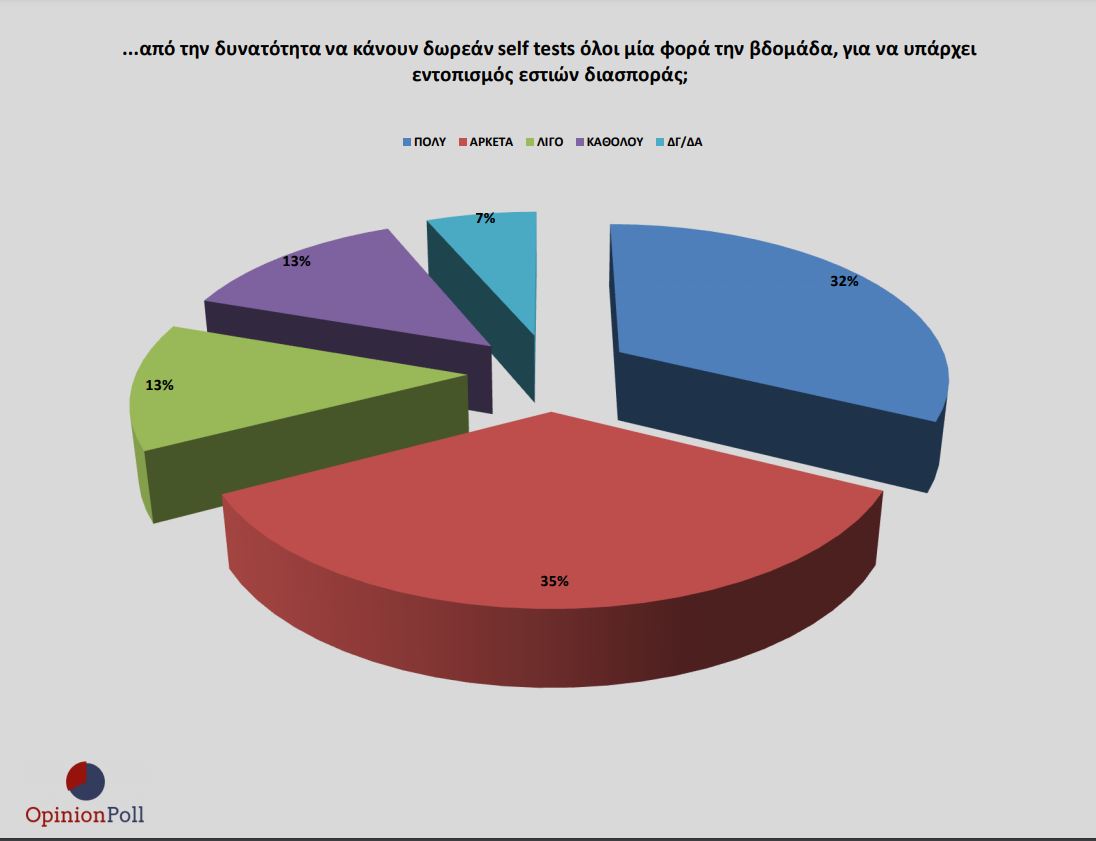 2. Σημαντική αποδοχή έχει το μέτρο της σταδιακά καθολικής εφαρμογής των self tests, όπως και αξιοσημείωτη είναι η ικανοποίηση από την οργάνωση και τους ρυθμούς εμβολιασμού με ποσοστά 67.4% και 62.2% αντίστοιχα