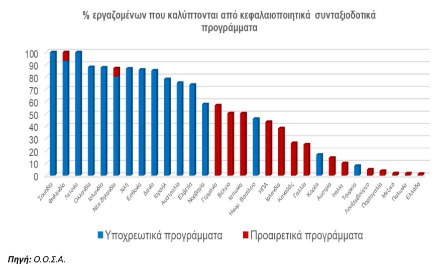 Έτσι, η Ελλάδα προχωρά –με καθυστέρηση– στον δρόμο που έχουν ακολουθήσει ήδη πολλές ανεπτυγμένες χώρες. Ενδεικτικό είναι ότι στις περισσότερες χώρες του ΟΟΣΑ πάνω από το 50% του εργατικού δυναμικού καλύπτεται συμπληρωματικά από κάποιο κεφαλαιοποιητικό πρόγραμμα ασφάλισης, ενώ σε χώρες όπως η Σουηδία, η Φινλανδία, η Ολλανδία, η Δανία, το ποσοστό των εργαζομένων που καλύπτεται από κεφαλαιοποιητικά συνταξιοδοτικά προγράμματα, υπερβαίνει το 80%.