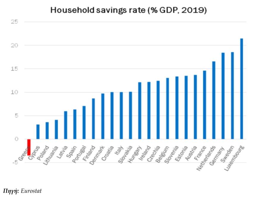 Η Ελλάδα διαθέτει, μακράν, το χαμηλότερο ποσοστό αποταμιεύσεων στην ΕΕ.