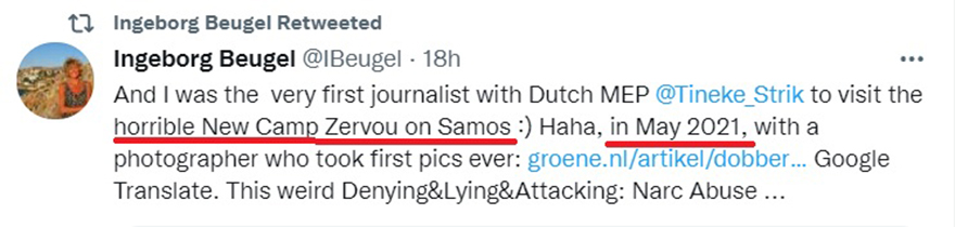 ΥΓ. Και επειδή θέλω να είμαι δίκαιος να αναγνωρίσω ότι η Ολλανδή δημοσιογράφος έκανε κάτι πραγματικά αξιοθαύμαστο: ήταν (κατά δήλωση της) η πρώτη δημοσιογράφος που από τον Μάιο επισκέφθηκε το νέο ΚΥΤ της Σάμου και από τότε κατάλαβε ότι είναι «φρικαλέο» παρότι το ΚΥΤ εγκαινιάστηκε στις 18 Σεπτεμβρίου και δέχθηκε τους πρώτους πρόσφυγες και μετανάστες στις 20 του ίδιου μήνα.